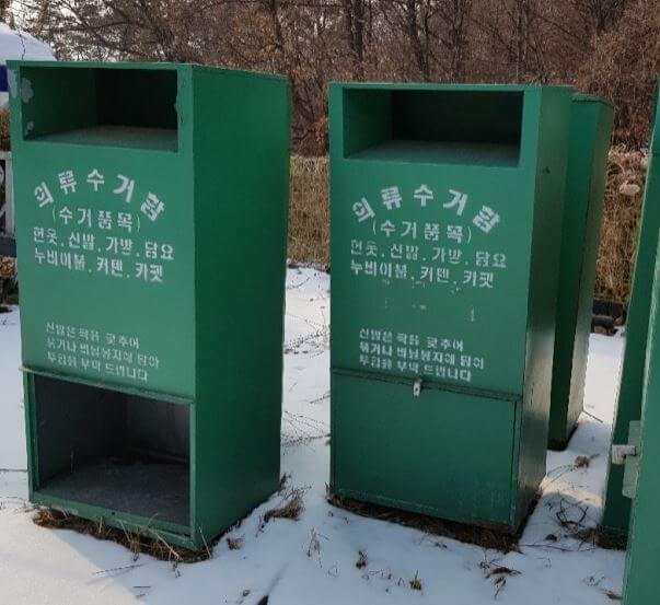 여기서 한 가지 주의할 점은 의류수거함은 아파트나 공동주택과 계약을 맺은 일반 업체가 설치한 의류수거함으로 함부로 의류수거함에 있는 것을 임의로 가져가게 되면 절도죄가 성립됩니다.